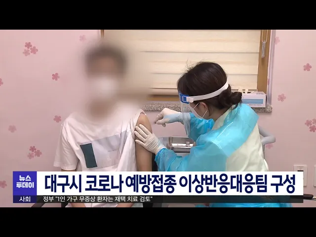 대구시가 코로나19 예방접종 뒤 발생하는 이상 반응에 대응하는 팀을 꾸렸습니다.이상 반응 대응팀은 역학조사관 4명과 팀장, 팀원 등 7명으로 구성됐는데 예방접종 뒤 신고된 중증이상반응 사례에 대한 역학조사, 피해보상 지원 업무를 합니다.한편 대구시는 질병관리청 최종 심의 결과 인과성 근거자료 불충분으로 판정된...