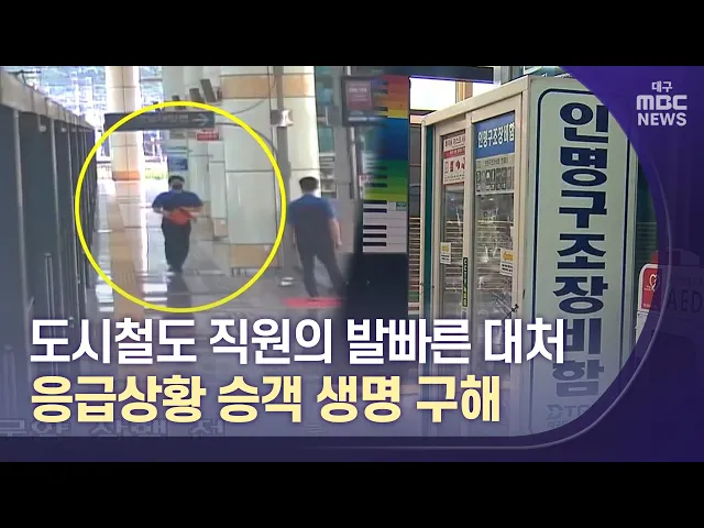 ◀앵커▶ 최근 대구도시철도 역 승강장에서 승객이 갑자기 의식을 잃고 쓰러져 하마터면 생명을 잃을 뻔 한 일이 있었는데요.다행히 역 직원들이 발 빠르게 응급처치를 해 소중한 생명을 구할 수 있었습니다.매년 받아온 응급처치 교육이 빛을 발한 건데요.해당 장면이 생생하게 CCTV에 찍혔습니다. 양관희 기자가 보도합니다...