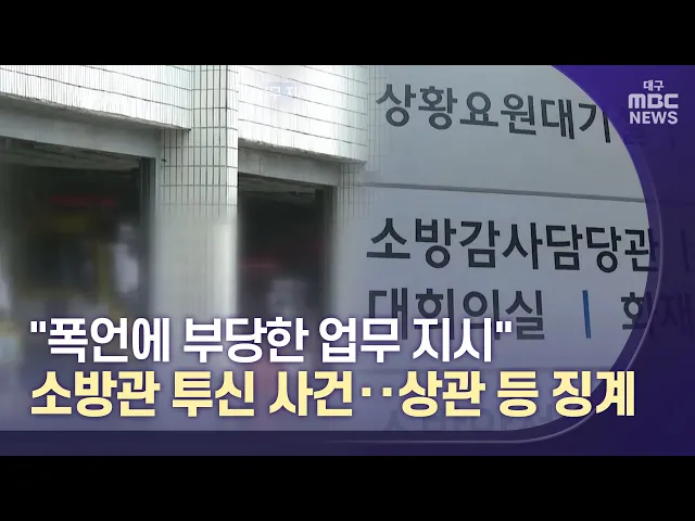 ◀앵커▶40대 소방관이 직장 내 괴롭힘 피해를 호소하며 소방서 건물에서 투신한 사건, 지난주 전해드렸는데요.자체 조사를 진행한 대구소방본부가 가해 상관과 당시 소방서장 등을 징계하기로 했습니다.양관희 기자입니다.◀기자▶지난달 21일 밤, 40대 소방공무원이 자신이 일하던 소방서 옥상에서 투신해 큰 부상을 입었습...
