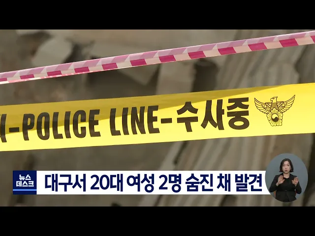 대구의 한 공터에 20대 초반 여성 두 명이 숨진채 발견돼 경찰이 수사에 나섰습니다.대구경찰청 등에 따르면 오늘 오전 5시 10분쯤 대구시 중구 포정동의 한 공터에 20대 초반 여성 두 명이 숨져있다는 신고가 접수됐습니다.경찰은 숨진 이들에 대한 신원을 확인했다며 정확한 사실 관계를 파악중이라고 밝혔습니다.