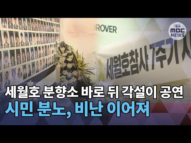 ◀ANC▶(여)전 국민들이 지켜보는 가운데세월호와 함께 304명의 희생자들이바다에 수장된 지 오늘로써 꼭 7년이 되는 날입니다.대구에서도 희생자를 기리는 추모 행사가열렸는데 너무도 황당한 일이 일어났습니다.(남)엄숙한 분향소 바로 뒤에서 분위기를 해치는 시끄러운 공연이세 시간 가까이 계속 됐습니다.각설이 공...