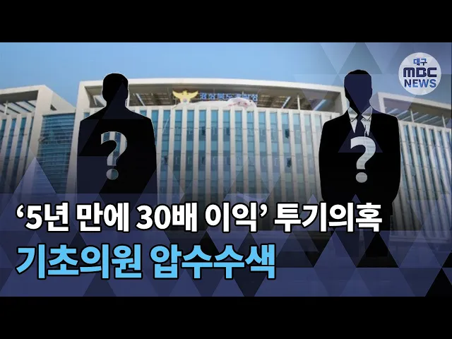 ◀ANC▶땅 투기 의혹을 조사 중인 경북경찰청이영천시의원과 고령군의원 사무실 등을압수수색했습니다.해당 의원들은 미공개 정보로 땅 투기를 해수억 원의 수익을 낸 의혹을 받고 있습니다.양관희 기자가 보도합니다. ◀END▶ ◀VCR▶경북경찰청 부동산투기 전담수사팀이어제 저녁 영천시의원 A 씨의 사무실과 집을 압...