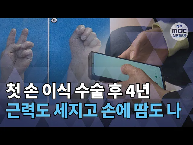 ◀ANC▶대구에서 4년 전 국내 최초로 손 이식 수술을 받은 손진욱 씨 시청자분들 기억하실 겁니다.손 씨는 새로운 손으로 일도 하고 결혼도 해 아버지가 됐는데요.이식 수술 경과를 살펴보고 법과 의료 보험의 문제 등을 다룬 논문이나왔는데. 최근 국내에서 손 이식 수술이 두 번째로 이뤄진 것으로 확인됐습니다.양관희...