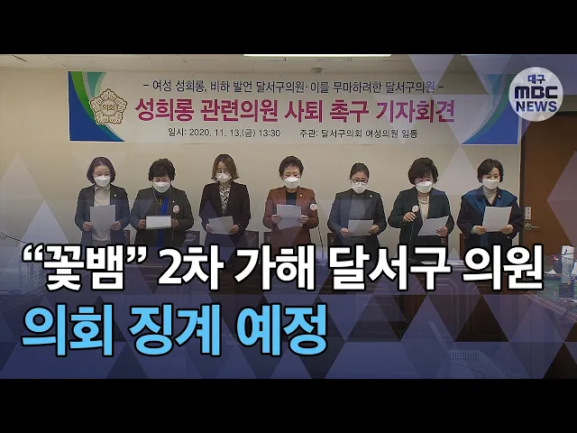 ◀ANC▶달서구의회 의원이 기자에게 성희롱을 했다는 폭로가 나왔다는 소식 전해드렸는데요.가해자로 지목된 구의원은 방송이 나간 뒤에 동료 의원과 기자들에게피해 여성을 험담하는 등 2차 가해까지 한 것으로 알려졌습니다. 달서구의회는 가해 구의원을 윤리위원회에 회부하기로 했습니다.양관희 기자가 보도합니다. ◀...
