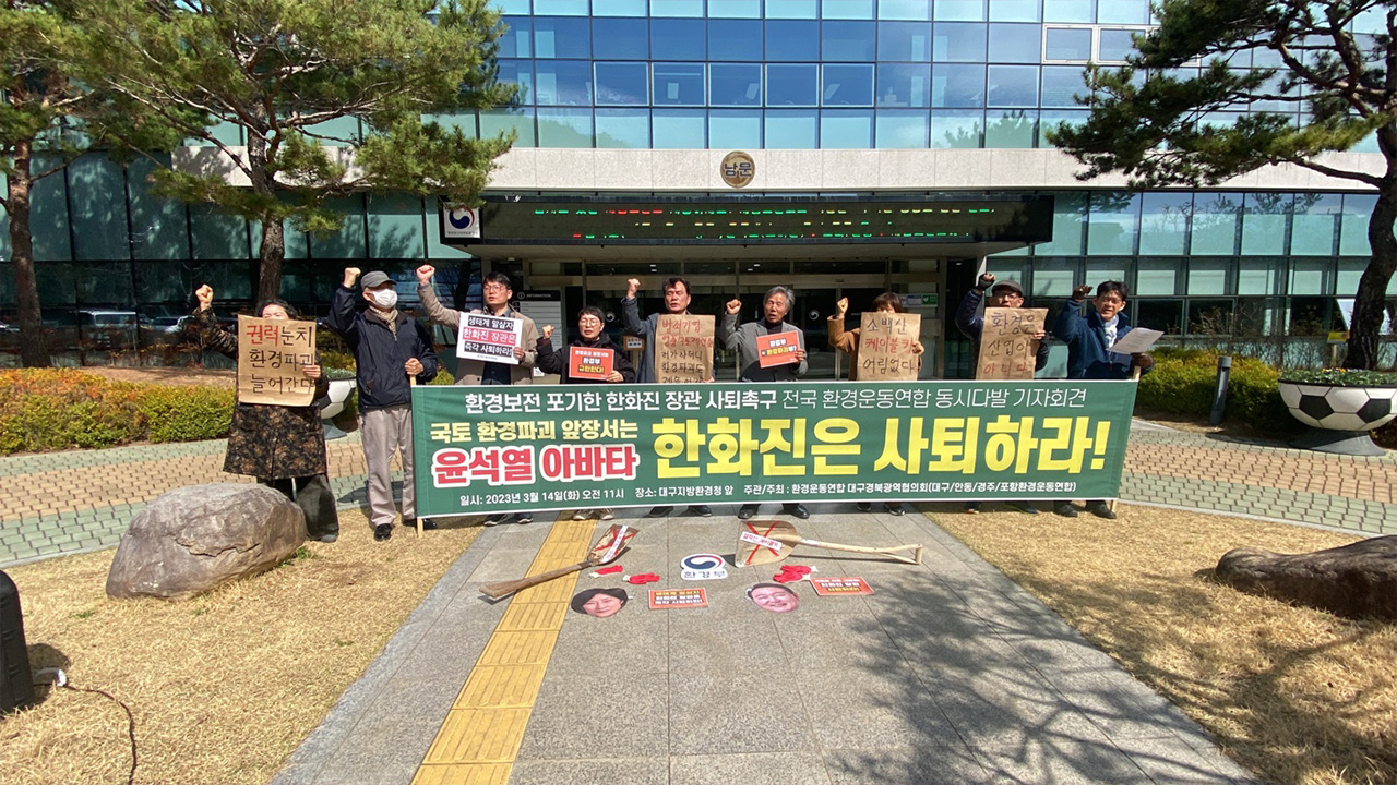 설악산 케이블카 설치 등 잇단 개발사업을 허용한 환경부 장관을 규탄하는 기자회견이 대구에서도 열렸습니다. 환경운동연합 대구 경북 광역협의회는 3월 14일 대구지방환경청 앞에서 기자회견을 열고 한화진 환경부 장관 사퇴를 촉구했습니다. 이들은 "환경부와 한 장관이 대통령 눈치만 살피며 자연환경 보전 직무를 유기...