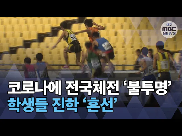 ◀ANC▶코로나 19 사태로 올해 10월 구미에서 열릴예정이던 전국체전 개최가 불투명해졌습니다.전국체전 성적으로 대학에 진학하거나실업팀에 들어가려던 고3 학생들은 기회를 잃을까 걱정하고 있습니다.코로나 방역도 해야 하고, 선의의 피해도 줄이려다 보니 지자체와 정부의 고민이 깊어지고 있습니다.양관희 기자가 ...