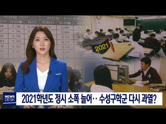 ◀ANC▶ 2021학년도 대입 전형에서 정시 비율이 소폭 늘어납니다. 학생부종합전형을 함께 늘린 대학도 많아 수성구 학군 쏠림 현상이 다시 커지는 것 아니냐는 우려가 나옵니다. 양관희 기자가 보도합니다. ◀END▶ ◀VCR▶ 올해 고2 학생이 치르는 2021학년도 대입 전형에서 정시 비율은 23%입니다. 2020학년도 대입 정...