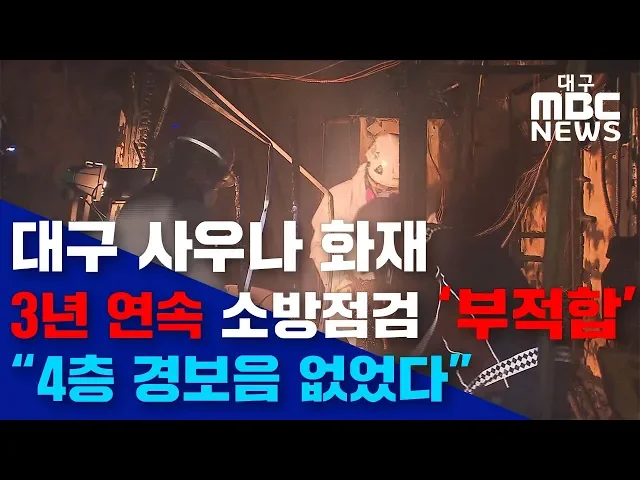 ◀ANC▶ 불이 난 사우나 시설은 소방시설과 점검이 제대로 이뤄지지 않은 것으로 드러났습니다. 취재결과 해당 사우나는 건축물대장에 용도가 사무실로 돼 있다보니 그간 소방 사각지대에 놓여 있었습니다. 양관희 기잡니다. ◀END▶ ◀VCR▶ 대구 사우나 화재로 숨진 사람이 3명, 크고 작은 부상을 입은 사람도 80여 명...