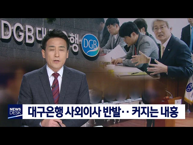 ◀ANC▶ 박명흠 대구은행장 직무대행이 채용비리 건으로 검찰 수사를 받고 있다고 어제 전해드렸죠? DGB금융지주 김태오 회장은 은행장 감시를 제대로 못 한 사외이사를 비판하며, 은행장 자리가 다시 공석이 되면 겸직도 고려하겠다고 밝혔습니다. 양관희 기자가 보도합니다. ◀END▶ ◀VCR▶ 김태오 회장은 오늘(어제)...