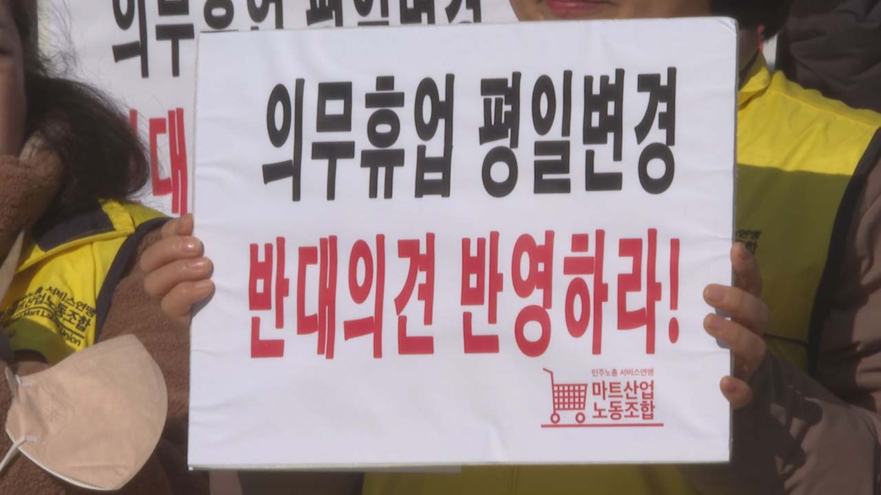 마트 노조 "노동자 뺀 의무휴업 변경 논의 중단돼야"