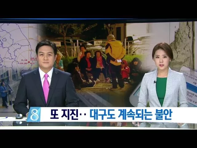 ◀ANC▶ 남]규모 5.8의 역대 최대 강진이 일어난지 1주일만에 어제 저녁 이 시각 또, 경주에서 규모 4.5의 여진이 발생했는데요. 오늘 뉴스데스크 시간에도 지진 관련 소식 집중 보도해 드립니다. 여]어젯밤 지진으로 대구에서도 최대 진도 4의 흔들림이 느껴졌는데요, 계속되는 지진에 시민들의 불안감도 커지고 있습니다...