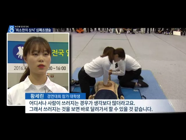 ◀ANC▶ 우리 주변에서 심정지 환자가 발생하면 생명을 살리기 위해 가장 필요한 것이 바로 심폐소생술입니다. 하지만 아직도 심폐소생술을 할 줄 모르는 분이 많습니다. 오늘 심폐소생술의 중요성을 알리기 위해 경연대회가 열렸습니다. 양관희 기잡니다. ◀END▶ ◀VCR▶ 지난해 5월 연주 도중 심근경색으로 쓰러진 ...