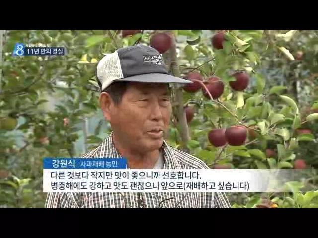 ◀ANC▶ 탁구공만한 사과 보신 적 있습니까? 일반사과 크기의 4분의 1수준이지만 맛은 일반사과와 다를 바 없는 품종이 개발 11년만에 결실을 맺었습니다. 1인 가구가 늘면서 소비자 기호도 변해 작은 과일 품종이 늘고 있습니다. 양관희 기자가 보도합니다. ◀END▶ ◀VCR▶ 사과나무에 방울만한 크기의 열매가 주렁주...