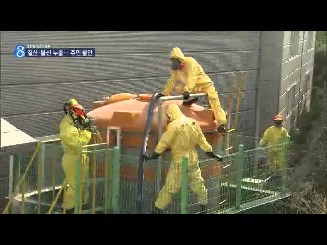 ◀ANC▶ 경북 영천의 한 공장에서 질산과 불산이 섞인 액체 4톤이 누출돼 인근 주민들이 긴급 대피했습니다. 공장관계자들이 사고가 난 지 2시간 반이 지나서야 신고하는 바람에 사고 수습이 더 늦어졌습니다. 양관희 기자가 보도합니다. ◀END▶ ◀VCR▶ 실리콘을 세정하고 남은 액체를 저장하는 탱크에서 노란 연기가 ...