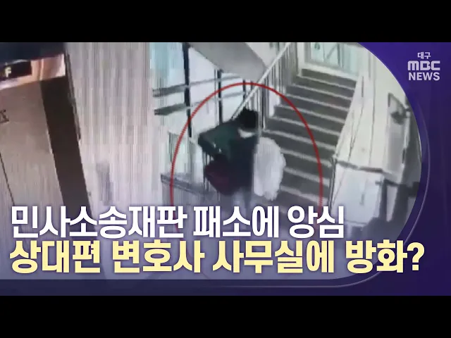 ◀앵커▶자, 그렇다면 이번 방화의 원인은 무엇일까?이런 의문이 듭니다. 방화 용의자는 지난해 민사소송에서 패소했습니다. 그런데 재판 결과에 앙심을 품고 상대편 변호사 사무실에 불을 지른 것으로 추정되고 있습니다.경찰은 소송 관계자도 불러 정확한 사건 경위를 조사하고 있습니다.양관희 기자가 보도합니다.◀기자▶방...
