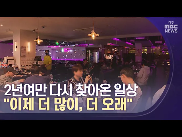 ◀앵커▶코로나 19로 시행된 사회적 거리두기 조치가 2년 1개월 만에 대부분 사라지면서 음식점과 술집 등에는 사람들로 붐볐습니다.그동안 어쩔 수 없이 친구들, 이웃들과 거리를 뒀지만 이제는 더 자주, 더 오래 만나겠다는 시민들이 많았다고 합니다.양관희 기자가 시민들 반응 들어봤습니다.◀기자▶대구 번화가 중 한 곳인...