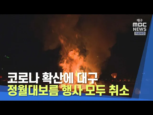 코로나 19 확산에 올해(2022년)도 대구·경북 정월대보름 행사가 취소됐습니다.대구 달서구청은 2월 15일 월광수변공원에서 진행할 예정이던 '달배달맞이 축제'를 취소했습니다.이 밖에 대구 각지에서 진행하려던 달집태우기 등 정월대보름 행사도 모두 취소됐습니다.경북 청도군도 전국 최대 규모로 진행하는 달집태우기 행...
