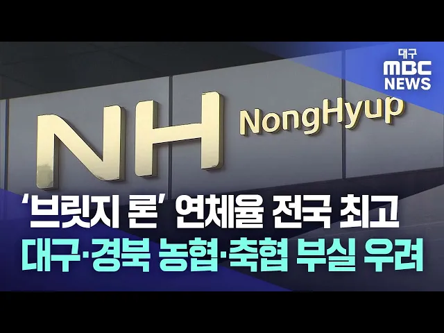◀앵커▶동산 PF, 프로젝트 파이낸싱의 부실이 회복하려는 경제에 찬 물을 끼얹을 우려가 커지고 있습니다.특히 '브릿지 론'의 부실화에 따른 대구 경북지역 농협과 축협의 상호금융 공동대출 연체율이 가장 높다는 결과가 나왔습니다.김철우 기자입니다.◀기자▶대구와 경북 지역의 농협과 축협 상호금융의 공동대출 연체율이 ...