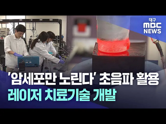 ◀앵커▶암 환자 치료에서 힘든 것 가운데 하나가 암세포를 잡기 위해서는 주변 세포들도 따라 손상되고 피해를 본다는 것인데요.레이저를 이용한 치료에서는 이 걱정이 머지않아 사라질 수 있을 것 같습니다.대구경북과학기술원, DGIST 연구팀이 암세포 이외의 세포 손상을 최소화한 레이저 치료 기술을 개발했습니다.김철우...