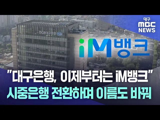 ◀앵커▶시중은행으로의 전환을 선언한 DGB대구은행이 오늘부터 새 이름인 'iM뱅크'로 이름을 바꿨습니다.지난 1967년 우리나라 최초의 지방은행으로 문을 연 지 57년 만에 대구은행이라는 이름이 사라졌습니다.김철우 기자입니다.◀기자▶DGB금융그룹이 ‘그룹 NEW CI 선포식과 시중은행 전환 선포식’을 열었습니다.6월 5일 오...