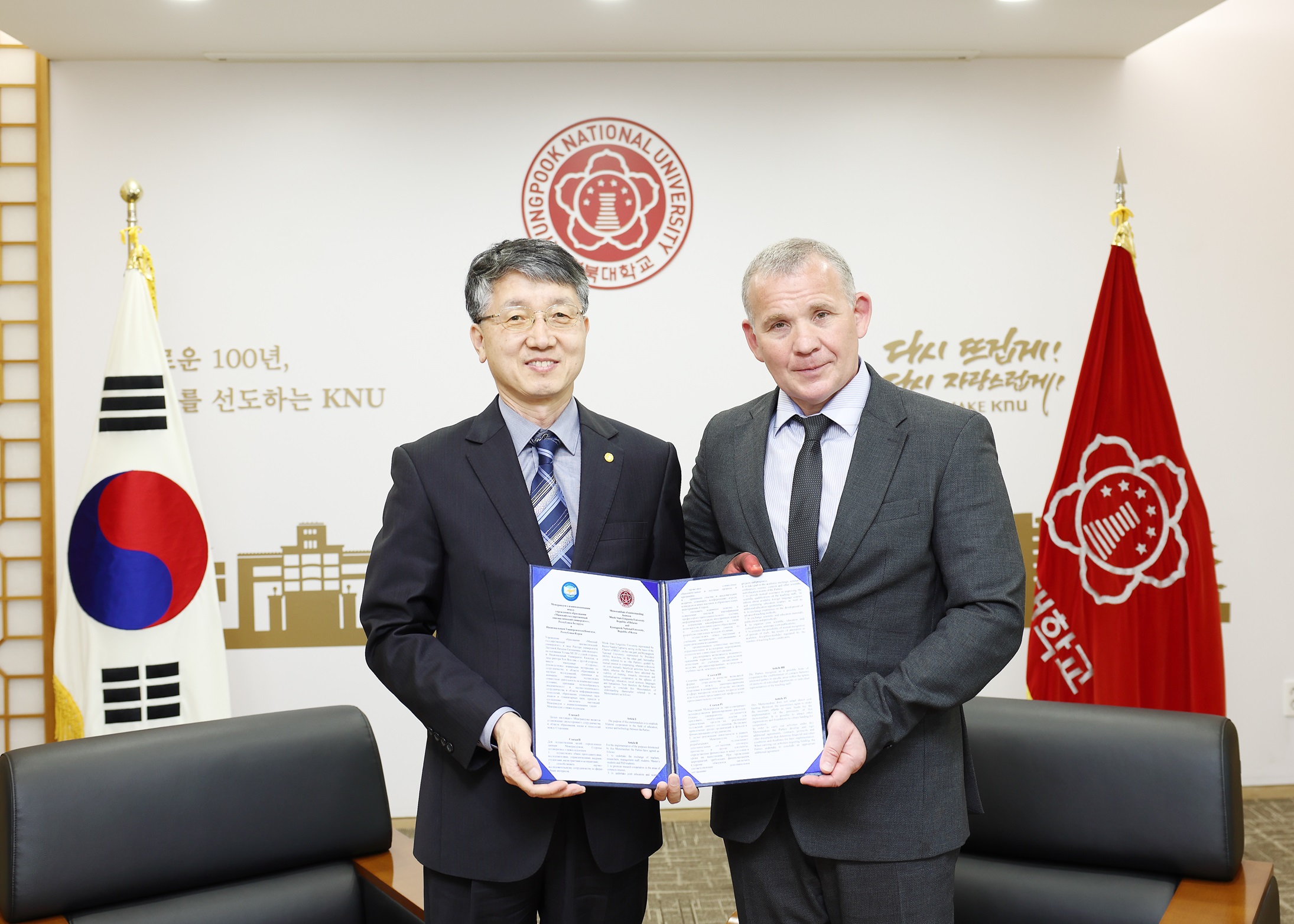 경북대학교는 벨라루스 민스크 국립언어대학교와 학술 교류 협정을 체결했습니다.이번 협정에 참석한 안드레이 체르네츠키 주한 벨라루스 대사는 경북대와 학생 교류를 포함한 학술교류를 확대해 나가기로 했습니다.민스크 국립언어대학은 벨라루스의 수도인 민스크에 위치한 대학으로 1948년 개교한 외국어 교육 중심의 국...