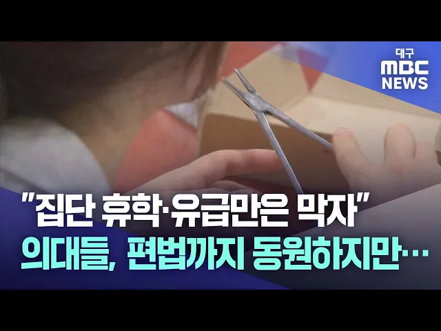 ◀앵커▶의대 정원 확대 여파가 석 달째 이어지고 있는 가운데 환자들의 어려움은 말할 것도 없지만 의과대학들의 고충도 커지고 있습니다.정부는 학생들의 집단 휴학이나 유급은 안 된다는 입장이지만, 학생들의 수업 참여는 극히 낮습니다. 학생들이 피해 보는 것을 막기 위해 온갖 변칙이 동원되고 있지만 일주일 내 사태 ...