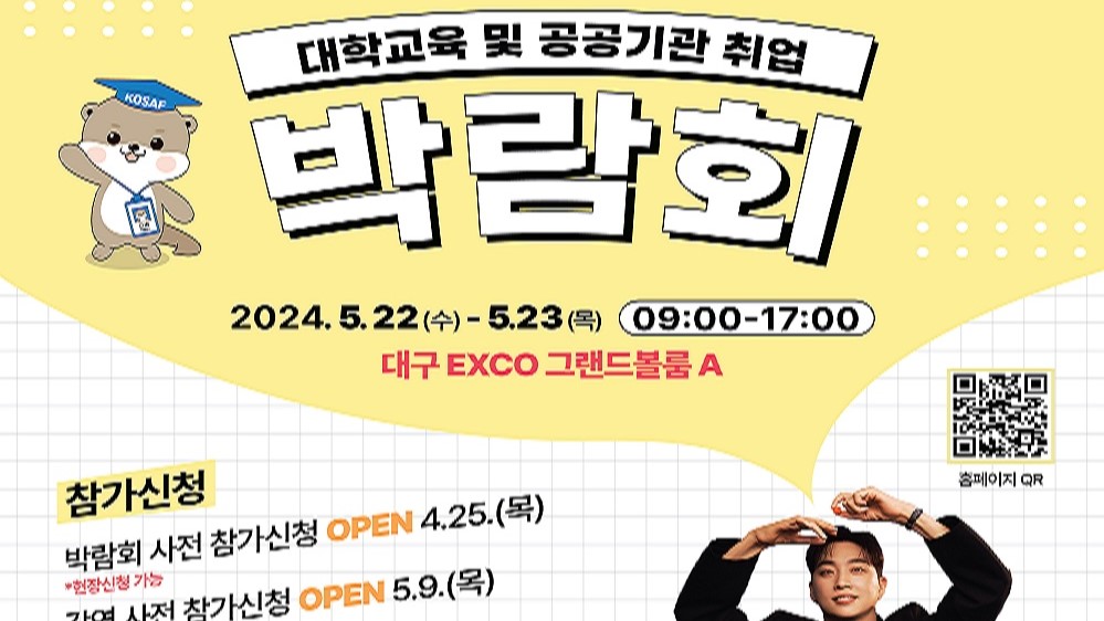 사진 제공 한국장학재단한국장학재단은 4월 25일부터 '대학 교육 및 공공기관 취업 박람회'에 대한 참가 신청을 받습니다.중고등학생과 학부모, 취업 준비생 등은 박람회 홈페이지(www.edujob.kr)를 통해 참가 신청을 하면 됩니다.5월 22일부터 이틀간 대구 엑스코에서 열리는 이번 박람회에는 전국 주요 대학과 대구 경북 ...