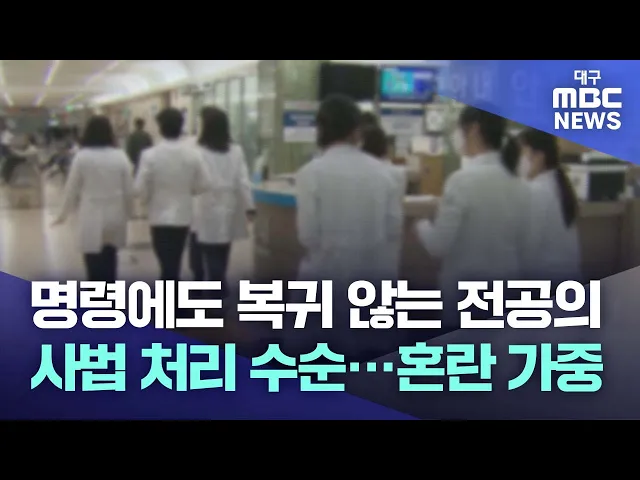 ◀앵커▶정부가 전공의 업무 복귀 명령에 이어 사법 처리를 예고하고 있습니다. 집단 사직서를 낸 전공의 대부분은 여전히 의료 현장에 돌아가지 않고 있습니다.이런 가운데 의대 정원 확대 규모를 두고 대학 내 갈등까지 불거지고 있습니다. 김철우 기자입니다.◀기자▶정부는 전공의 미복귀를 불법으로 규정하고 사법처리를 ...