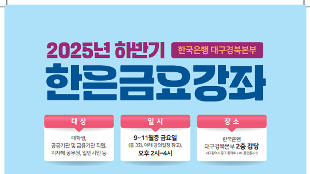 한국은행 대구경북본부, 2025년 하반기 '금요 강좌' 개최