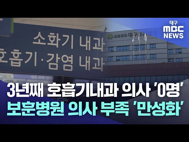◀앵커▶대구의 수련병원 전공의 모집 결과, 내과와 외과, 소아청소년과 같은 특정 분야 기피가 심각하다는 소식, 전해드렸습니다.공공병원의 경우, 이런 분야 의사 부족이 만성화되다시피 했습니다. 심지어 몇 년째 의사가 한 명도 없는 진료과가 있는 곳도 있습니다.국가유공자와 유가족들이 찾는 대구보훈병원입니다.김철...