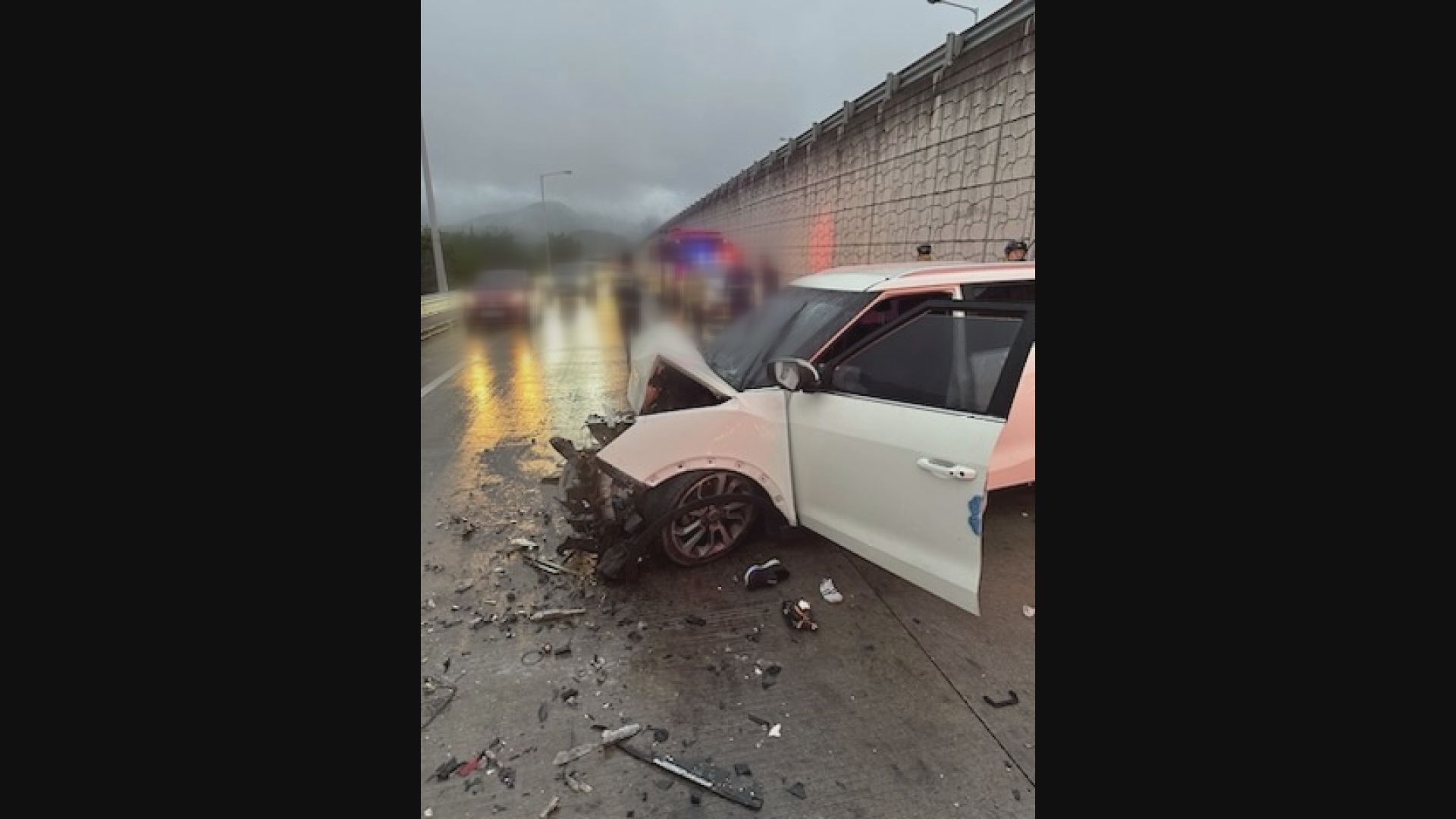 승용차 기중기 추돌 사고 운전자 사망, 동승자 중상