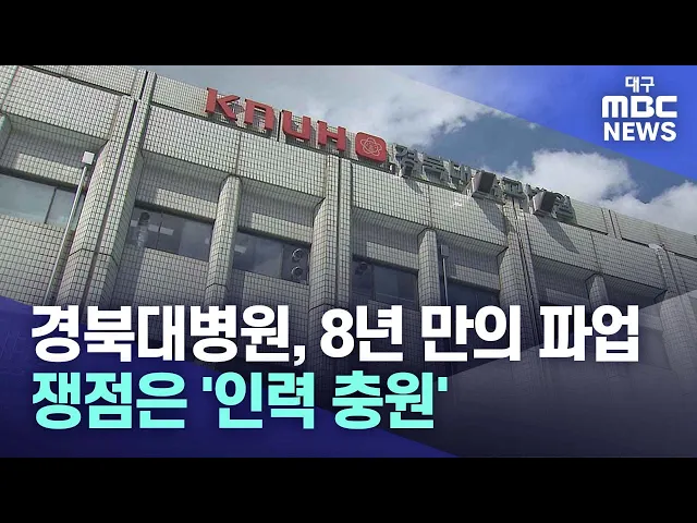 ◀앵커▶경북대학교병원 노조가 인력 충원 등을 요구하며 무기한 전면 파업에 들어갔습니다.지난 2015년 이후 8년 만의 파업인데요, 응급실과 수술실 같은 필수 유지 인력은 업무를 하고 있지만, 장기화될 경우 진료 차질이 불가피할 것으로 보입니다. 김철우 기자입니다.◀기자▶민주노총 공공운수노조 의료연대본부 소속 경북...