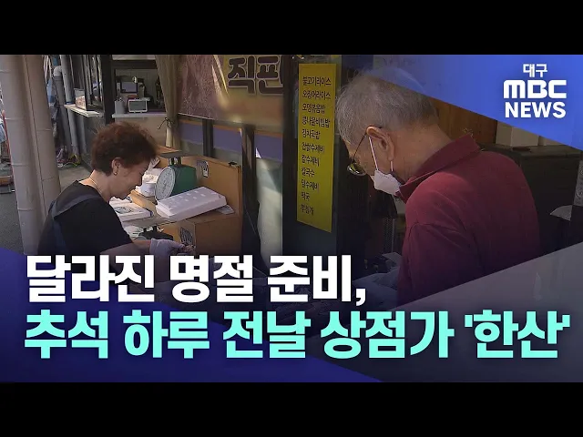 ◀앵커▶엿새에 이르는 긴 추석 연휴가 시작됐습니다.예전 같으면 역과 터미널은 물론 대형마트나 재래시장도 붐볐지만, 추석 하루 전인 9월 28일, 대구 시내는 대체로 한산한 모습이었습니다.추석 하루 전날 모습, 김철우 기자가 전해드립니다.◀기자▶떡집마다 손님들이 길게 줄을 서 있습니다.주문받은 떡을 포장하고 연신 ...