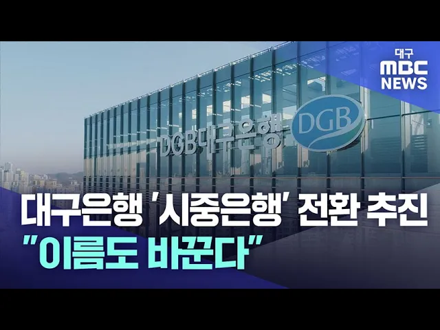 ◀앵커▶전국 최초의 지방은행이죠, DGB 대구은행이 시중은행으로 전환될 것으로 보입니다.금융위원회는 7월 5일 지방은행의 시중은행 전환을 허용한다고 발표했는데, 전환 1호로 대구은행을 염두에 두고 있다고 했습니다.대구은행 측은 시중은행으로 전환되더라도 본점을 대구에 두겠지만, 은행 이름 변경은 검토하고 있다고...