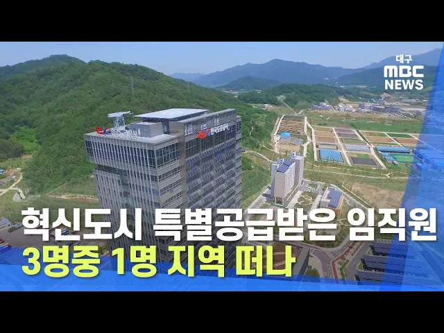 지방 혁신도시로 이전하면서 아파트 특별공급을 받은 공공기관 임직원 3명 가운데 1명이 해당 지역을 떠난 것으로 나타났습니다.국민의힘 김상훈 의원에 따르면 지방으로 이전하면서 아파트를 특별공급받은 공공기관 임직원 수는 7천 5백여명으로 이 가운데 이사하거나 타지역으로 발령받은 사람은 2천 2백여명으로 30%였습...