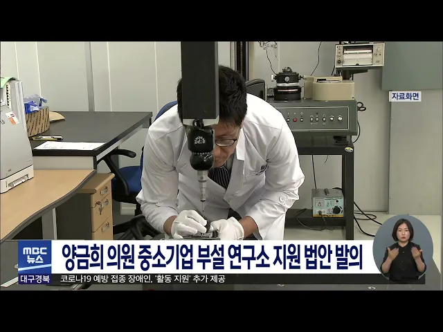 국민의힘 양금희 의원은 중소기업 부설연구소 지원을 위한 법률 개정안을 대표발의했습니다.양금희 의원은 중소기업 가운데 연구소를 보유한 기업은 1%에도 미치지 못한다며 국가 연구개발 사업 참여시 우대하고 정부 포상 등 인센티브를 제공해서 중소기업의 연구개발 기능을 확대해야 한다고 강조했습니다.양 의원에 따르...