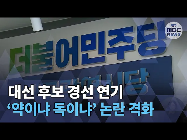 ◀앵커▶ 대선 후보 경선 연기론를 놓고 민주당의 논쟁이 격화되고 있습니다. 당헌당규에 명시된 후보 선출 시점이 다가오는데, 후보들마다 다른 목소리를 내고 있기 때문인데요.여권의 대권후보 경선 연기 논란이 대구경북에까지 번지고 있습니다.김철우 기자가 취재했습니다. ◀영상▶ 영호남의 전현직 교수 160명이 국회에서...