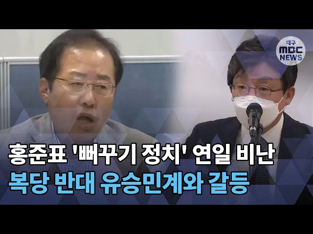 ◀ANC▶국민의힘 복당을 신청한 홍준표 의원이복당을 반대하는 유승민계 의원들을 향해이른바 '뻐꾸기 정치' 라면서연일 비난을 쏟아내면서 논란이 커지고 있습니다.그런데 TK 정치권 내부에서 복당을 찬성하는 움직임이 나타나면서본격적인 갈등 양상으로 번지고 있습니다. 김철우 기잡니다. ◀END▶ ◀VCR▶CG]"음험...
