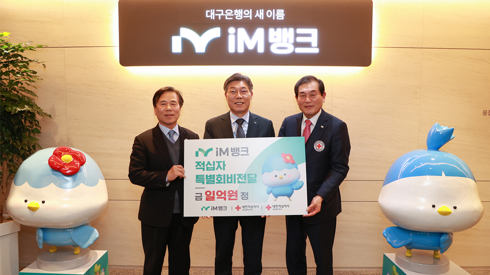 iM뱅크는 대한적십자사 대구경북지사에 2025년도 대한적십자사 특별회비 1억 원을 전달했습니다. 이번에 전달된 특별회비는 각종 재난 현장 구호 활동과 취약계층 지원활동 등 대한적십자사가 수행하는 다양한 인도주의 사업을 위한 재원으로 사용될 예정입니다. iM뱅크는 해마다 적십자 특별회비를 후원하면서 혈액 사업 ...