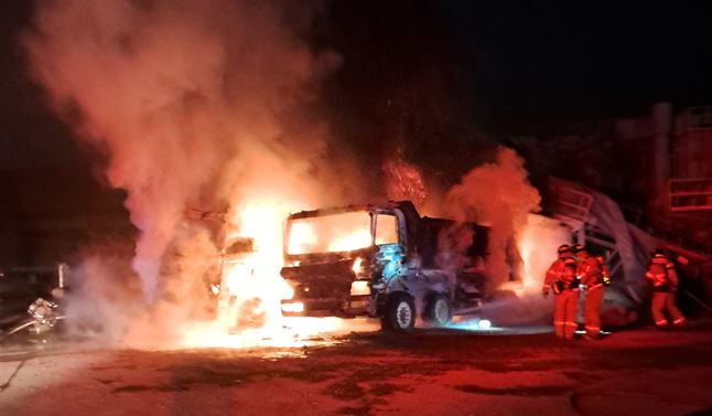 경북 경산서 주차된 차량 화재···25톤 화물차 두 대 불타
