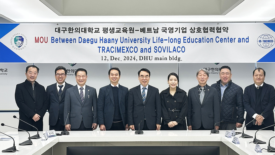 대구한의대학교 평생교육원은 베트남 국영기업 트레이시멕스코, 소빌라코와 우수한 인재를 양성하기 위한 3자 업무협약을 체결했습니다.주요 협약 내용은 평생교육원 입학 지원 및 사전 상담 제공, 한국어 능력 및 전공 관련 사전 교육 프로그램 설계 및 운영 등으로 양국 간 상호 발전에 필요한 제반 사항에 대해 적극 협...