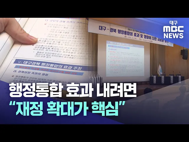 ◀앵커▶우여곡절 끝에 대구·경북 행정 통합은 빠른 속도로 진행되고 있습니다.대구와 경북을 합치면 산술적으로는 인구도 늘고 지역내총생산도 늘겠지만, 긍정적인 효과는 어느 정도인지, 지역 경쟁력을 얼마나 높일 수 있을 것인지는 명확하지 않습니다.한국은행이 오늘 대구 경북 행정 통합이 가져올 효과를 분석하고 과제...