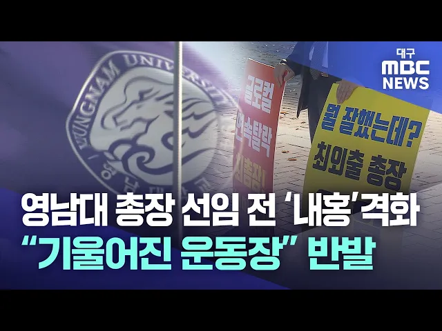 ◀앵커▶9명이 출사표를 던진 영남대 차기 총장 선임을 두고 논란이 끊이지 않고 있습니다.영남대 총동창회 비대위가 현 총장 책임론을 들고 나왔고 후보에 등록한 전현직 교수들 가운데 일부는 '기울어진 운동장'에서 '계란으로 바위치기'라며 현 총장의 연임에 제동을 걸고 있는데요.이에 대해 최외출 총장은 흑색선전이라...