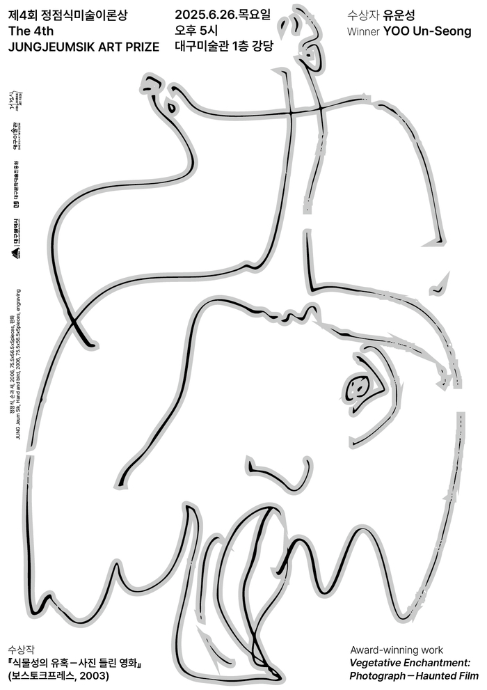 정점식미술이론상 포스터 대구문화예술진흥원 제공대구미술관은 영화평론가 유운성이 쓴 '식물성의 유혹 : 사진 들린 영화'를 '제4회 정점식 미술 이론상' 수상작으로 정하고 6월 26일 오후 5시에 시상식을 했습니다. 수상작 '식물성의 유혹'은 사진과 영화의 관계를 기술적 측면이 아닌 존재론적 차원에서 조명했다는 평을...