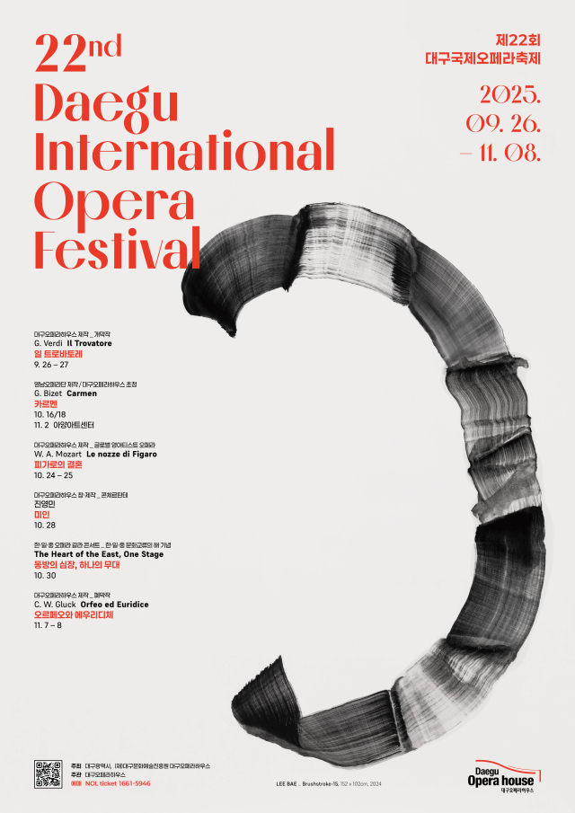 제 22회 대구국제오페라 축제 포스터, 대구문화예술진흥원대구 국제 오페라 축제가 문화체육관광부가 주최하고 예술경영지원센터가 주관하는 '2025 장르별 시장 거점화 지원사업'에 선정됐습니다. '장르별 시장 거점화 사업'은 음악, 무용, 연극, 전통 등 공연예술 장르를 대표하는 축제를 유통 중심의 거점으로 육성해 지...