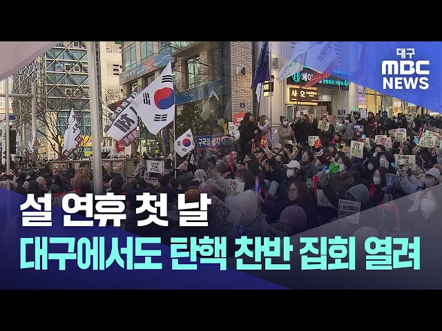 ◀ 앵 커 ▶설 연휴 첫날인 1월 25일에도 대구 도심에서는 윤석열 대통령 탄핵 찬반 집회가 열렸습니다.법원이 윤석열 구속 연장을 받아들이지 않은 터라 양측의 주장은 더욱더 엇갈렸습니다.검찰의 구속 기간 연장 재신청에 대한 법원의 결정은 이르면 오늘 밤 나올 예정입니다.이태우 기잡니다. ◀ 기자 ▶명절에 정치 얘기하...