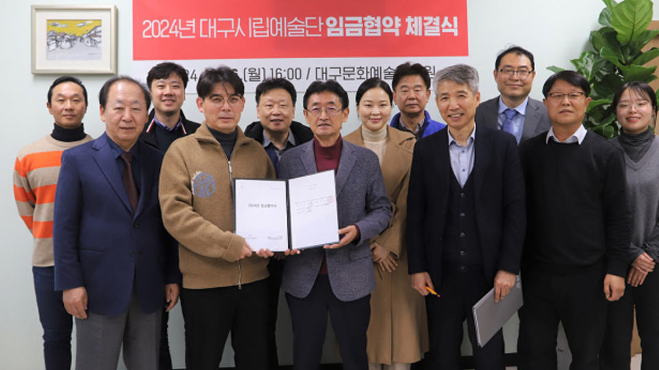 대구시 산하 예술단이 대구시와 2024년 임금 협약을 체결했습니다. 대구문화예술진흥원과 민주노총 산하 대구시립예술단지회는 공무원 2024년 임금 인상분에 맞춘 기본급 인상 2.5%에 합의했습니다.대구시립예술단지회와 문예진흥원은 2024년 9월 이후 노사 간 3차례 실무교섭과 조정 회의를 거쳐 2.5% 인상에 합의했습니다...