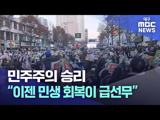 ◀앵커▶비상계엄 선포로 한국 사회의 최대 걸림돌이 됐던 윤석열 대통령의 탄핵안이 통과하면서, 이젠 경제를 살리는 일이 남았습니다. 정치 불확실성으로 흐트러진 사회 분위기를 다잡아 고통받는 민생을 살려야 한다는 목소리가 큽니다.이태우 기잡니다.◀기자▶탄핵안이 통과하기 전에는 모든 것이 불안한, 말 그대로 안갯...