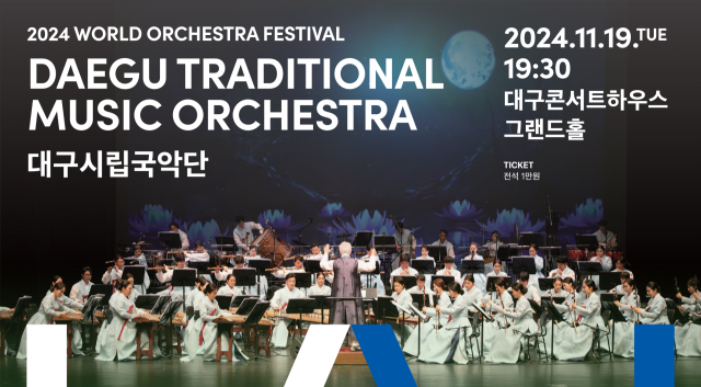 사진 제공 대구시립국악단대구시립국악단이 월드 오케스트라페스티벌에서 처음으로 연주합니다. 시립국악단은 스페셜 오케스트라로 축제에 참여해 11월 19일 저녁 7시 30분 대구콘서트하우스 그랜드홀 무대에 섭니다. 국악 작곡자이자 지휘자, 연주자인 박범훈의 '오케스트라 아시아를 위한 뱃노래'로 공연을 시작해 가야금...