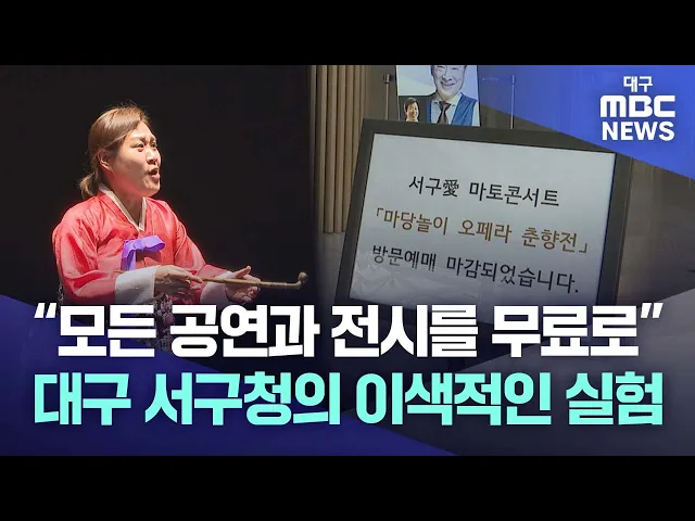 ◀앵커▶대구시와 9개 구, 군은 자체 공연장과 공연단체를 두고 일 년 내내 다양한 볼거리를 제공하고 있습니다.그 가운데 유독 한 자치단체가 모든 공연을 무료로 하면서 호응을 얻고 있는데,무슨 이유로 이렇게 하고 있는지 이태우 기자가 보도합니다. ◀기자▶대구 서구문화회관이 마련한 마당놀이 오페라 '춘향전' 준비가 ...